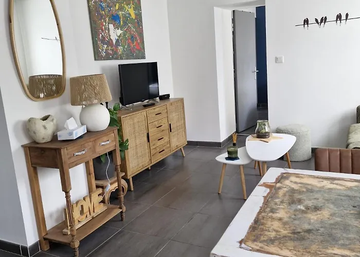Maison Aux Portes Des Garrigues ligger 4 km fra Les Arenes de Nimes og repræsenterer en 1 værelsers indkvartering med en terrasse. Feriehus har 1 badeværelser og et udstyret køkken.